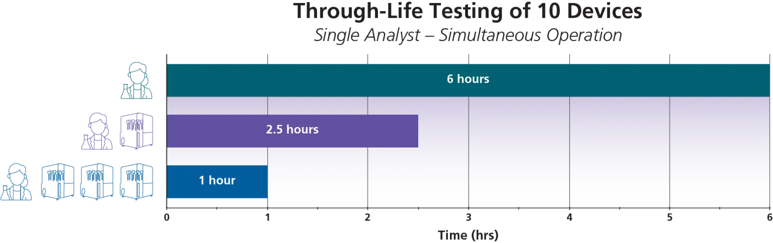 수동으로 테스트하는 기존 방식은 많은 시간과 노력이 필요하고, 작업자의 실수로 인해 규격 외(out-of-spec) 결과가 나올 위험이 높습니다. Vereo® Spray Weigh Collect 벤치탑 비강 스프레이 테스트 시스템은 이러한 문제를 해결합니다. 이 시스템은 신뢰할 수 있는 Viota® 소프트웨어를 사용하여 작동, 샘플 수집 및 무게 측정 과정을 자동화합니다. 덕분에 용량 균일성 테스트에 소요되는 시간과 오류를 획기적으로 줄일 수 있습니다. Vereo Spray Weigh Collect를 사용하면 '몇 초 안에 무게 측정'이 가능해져, 효율성을 극대화할 수 있습니다.